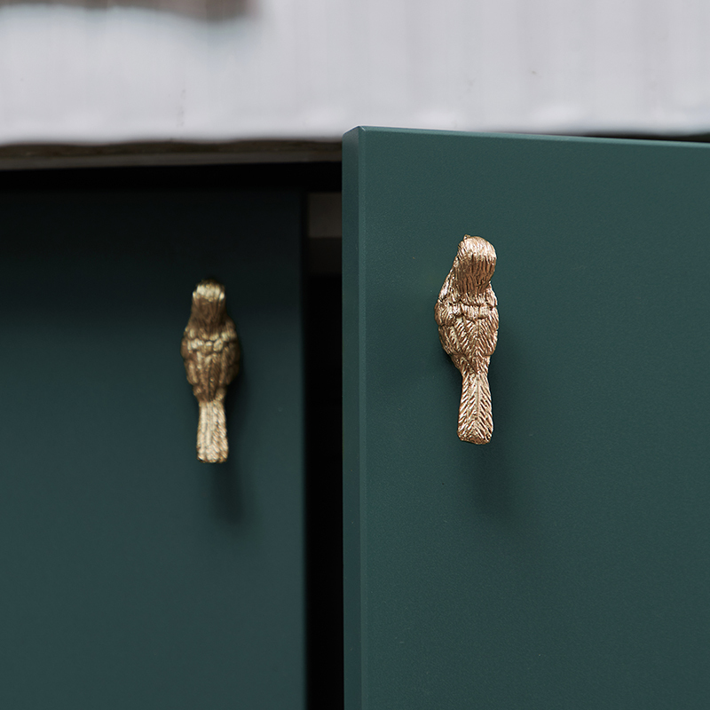 Złoty uchwyt meblowy w kształcie ptaka to nie tylko funkcjonalny dodatek – to mała biżuteria dla Twoich mebli. 💎