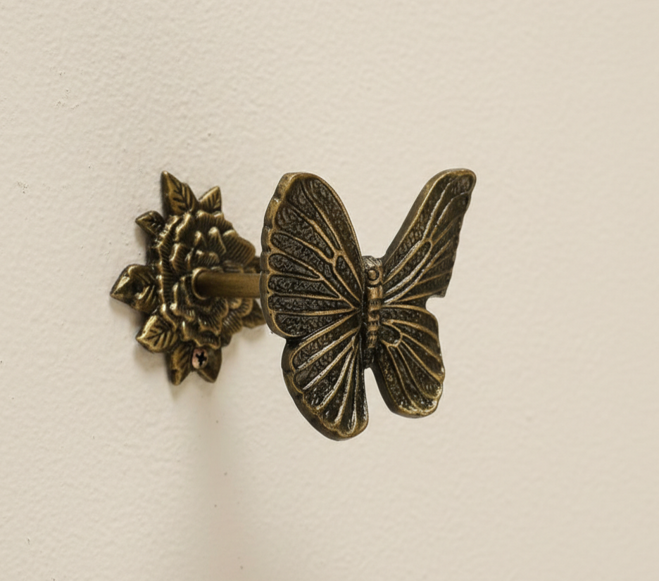 Dodaj swoim wnętrzom lekkości i elegancji dzięki żeliwnemu wieszakowi ściennemu w kształcie motyla z dekoracyjnym kwiatem – funkcjonalny i wyjątkowy detal w jednym! 🦋🌸